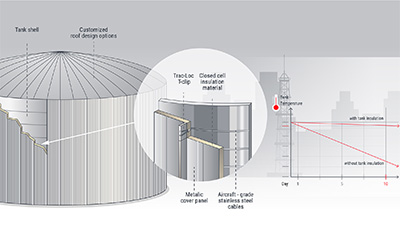 凍脹防護系統可防止低溫儲罐地面下形成冰體。冰體形成會導致許多問題,例如不必要或失控的儲罐移動或升高。可通過在低溫儲罐周圍應用保溫層,和通過將電伴熱線應用到儲罐下面的混凝土層,來防止凍脹